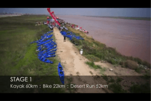 ![]() | The Race Format was as Follows: Day one started with a longer than anticipated bus ride to the start. A few detours were taken as the bus didn’t fit under some of the bridges. It was a relief to arrive. The Yellow river was brown and flowing fast which excited us somewhat as 60km can be a long time in the boat. We paddled well and came out in the top end of the group. Onto the bike for a fast MTB to the start of the Desert Run. | ||