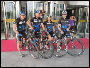 | Our team was solid and fast. It is tough to work as a new team as we each had to learn each others strengths and capabilities. It is important to maximize the team’s strength by working together. It doesn’t always come naturally and can sometimes take a few races to ‘get it all worked out. Transition from bike to Trek was quick and before we knew it the sun was setting on the Gobi Desert whilst we jogged our way into the darkness. | ![]() | ||